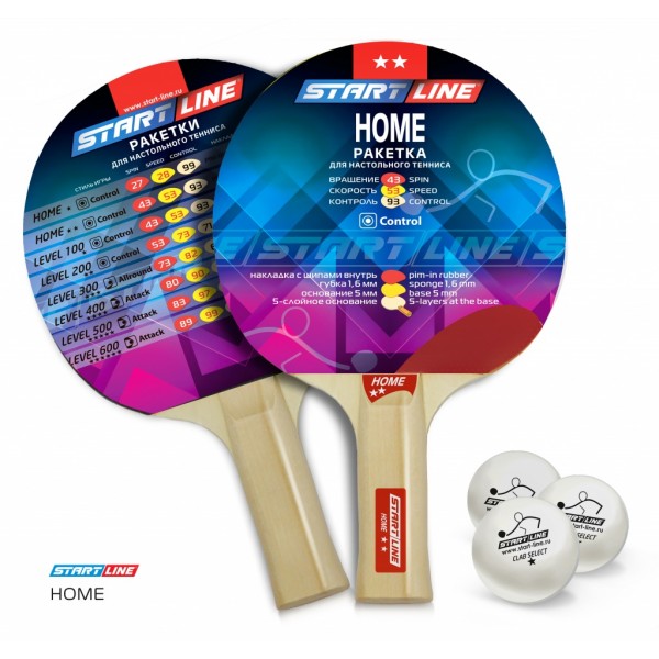 Набор Start Line 12102 включает 2 ракетки Home 2 звезды, 3 мяча Club Select, сетку с креплением.