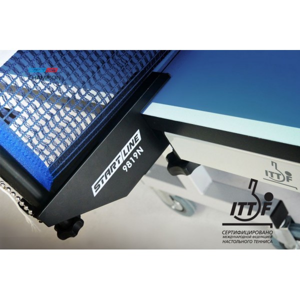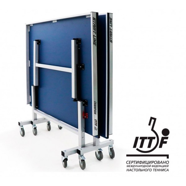 Стол Start Line Champion является 1-й моделью российского производства, которая получила сертификат ITTF и может использоваться для проведения соревнований на самом высоком уровне. Для столешницы использована МДФ, которая позволяет получить лучший отскок мяча (чем на ДСП). Сеткой не комплектуется.