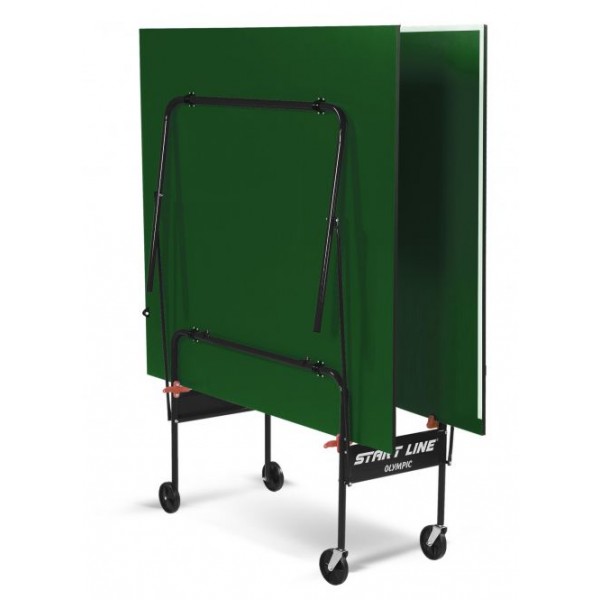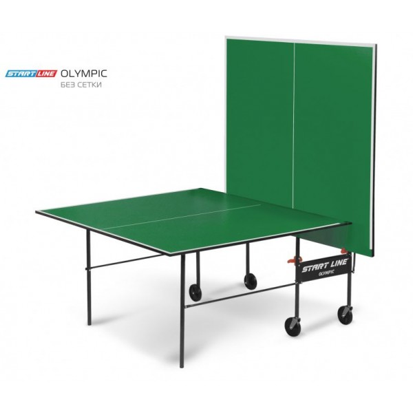 Стол Start Line Olympic имеет стандартный международный размер и удобную систему складывания. Есть ролики для перемещения. Предусмотрен вариант для одиночной игры. Без сетки.