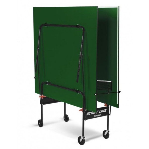 Стол Start Line Olympic имеет стандартный международный размер и удобную систему складывания. Есть ролики для перемещения. Предусмотрен вариант для одиночной игры. Есть встроенная сетка.