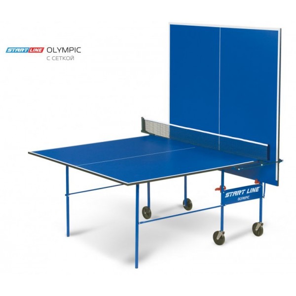 Стол Start Line Olympic имеет стандартный международный размер и удобную систему складывания. Есть ролики для перемещения. Предусмотрен вариант для одиночной игры. Есть встроенная сетка.