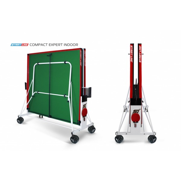 Стол Start Line Compact Expert Indoor предлагает современную систему трансформации для установки в помещении. Сложить стол легко может один человек, установлены удобные колеса для перемещения. Встроенная сетка имеет систему натяжения. Есть место для хранения ракеток.
