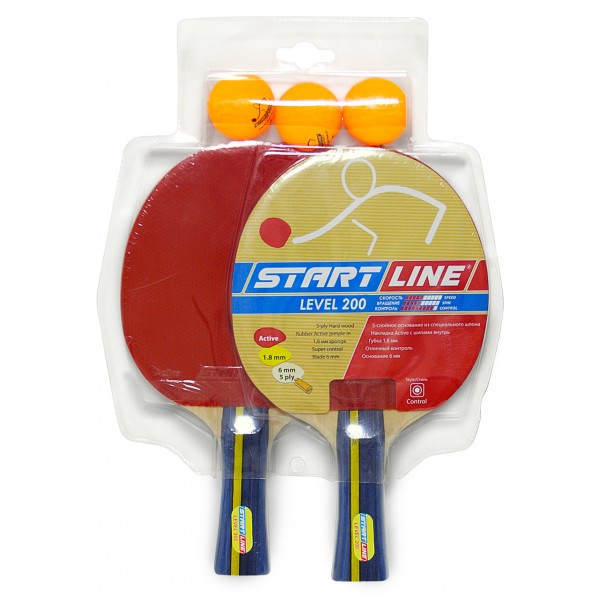 Набор Start Line 61-300 включает 2 ракетки Level 200 и 3 мяча Club Select.