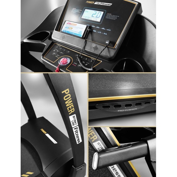 Конструкция основана на моторе мощностью 2,5 л. с. и позволяет развить скорость до 16 км/ч. Комфортный размер бегового полотна сочетается с дополнительной амортизацией гелиевыми вставками на деке. Предусмотрены датчики проверки пульса. Можно менять угол наклона (до 15 градусов).