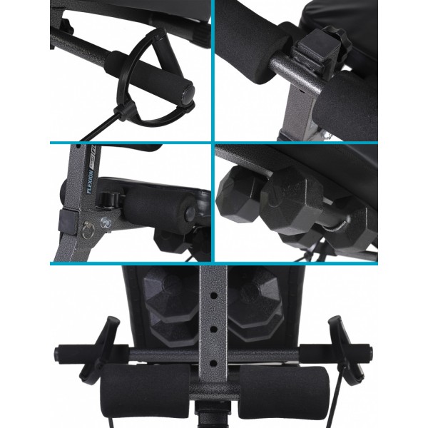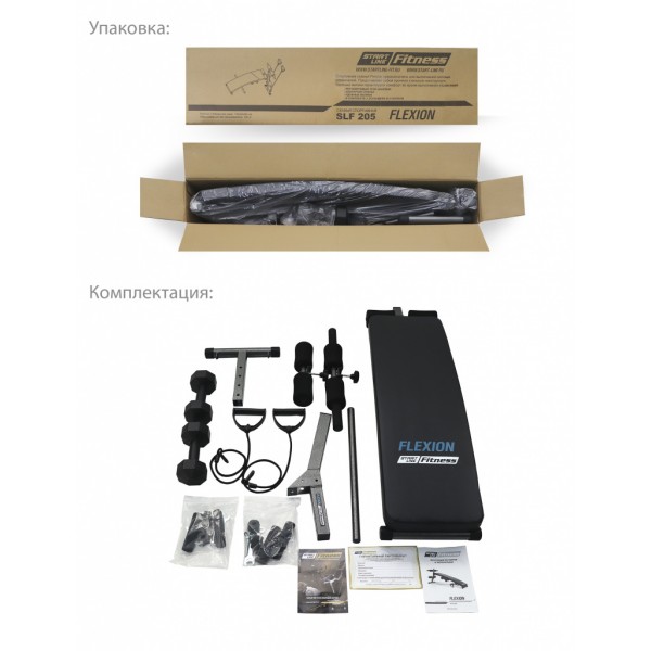 Start Line FLEXION SLF 205 - надежная скамья для тренировки мышц пресса. Домашний тренажер в комплекте с эспандерами и гантелями.