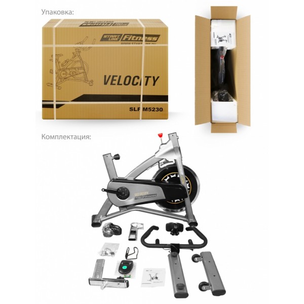 Спин-байк Start Line Velocity SLF M5230 подойдет для спортсменов массой до 130 кг. Компактная устойчивая модель для дома с колодочной системой нагрузки.