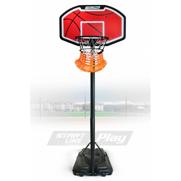 Start Line Standard 019 - надежная стойка для игры в баскетбол на уличной площадке. Основание заполняется утяжелителем, например песком - объем 115 л. Щит модели выполнен из усиленного пластика. На основании есть колеса для обеспечения мобильности.