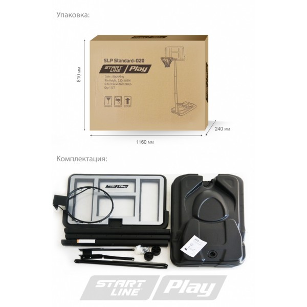 Start Line Standard 020 ZY-020 - надежная стойка для игры в баскетбол на уличной площадке. Основание заполняется утяжелителем, например песком - объем 115 л. Щит модели выполнен из усиленного пластика. На основании есть колеса для обеспечения мобильности.