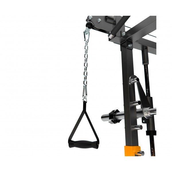 | Нагрузка | на встроенный гриф 300 кг, на тягу сверху 200 кг/ снизу 180 кг, нагрузка на кронштейны для хранения до 600 кг, на турник до 200 кг, на баттерфляй до 100 кг |