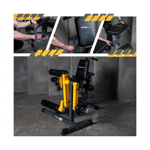 STONERISE DTrainer позволяет выполнять сгибание, а также разгибание ног, дополнительно возможно использовать тренажер как обратную гиперэкстензию.