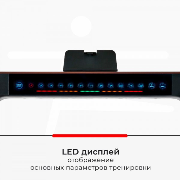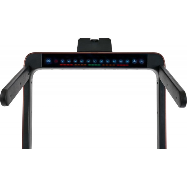 Толщина сложенной дорожки составляет всего 12 см! Такой тренажер легко хранить даже в небольшой комнате, например под кроватью. Производитель предлагает использовать дорожку в одном из трех вариантов. С поднятыми поручнями будет удобно заниматься пожилым людям или во время быстрого бега. Также можно тренироваться без поручней или даже с полностью опущенной консолью (подойдет для ходьбы со скоростью до 4 км/ч). Настройки в последнем случае меняются тогда через пульт ДУ.