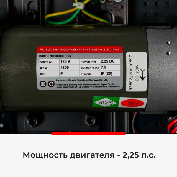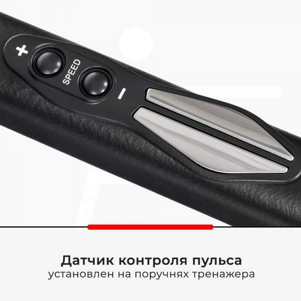 Тренажер основан на прочной деке и мощном японском двигателе Fuji, которые позволяют развить скорость до 12 км/ч. Небольшой размер бегового полотна позволяет разместить дорожку даже в небольшой комнате, тем более что её можно достаточно компактно сложить. Есть механическая регулировка наклона, а менять скорость движения можно прямо на поручне, возле сенсоров проверки пульса. Установлена система амортизации для более бережного воздействия на суставы во время бега.