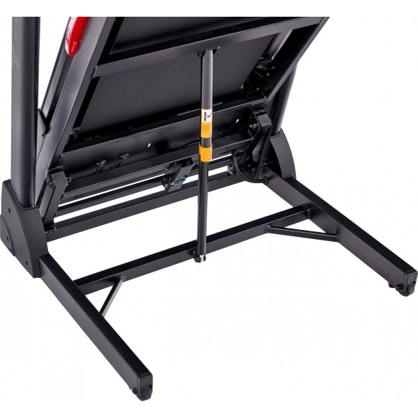 Немецкие инженеры установили японский мотор Fuji на 2,75 л.с., который обеспечивает скорость до 16 км/ч. Беговое полотно повышенной прочности имеет комфортный размер и возможность электронного увеличения наклона. Установлена надежная амортизация профессионального уровня для оптимальной компенсации ударного воздействия на суставы. Датчики в поручнях проверят пульс во время тренировки.