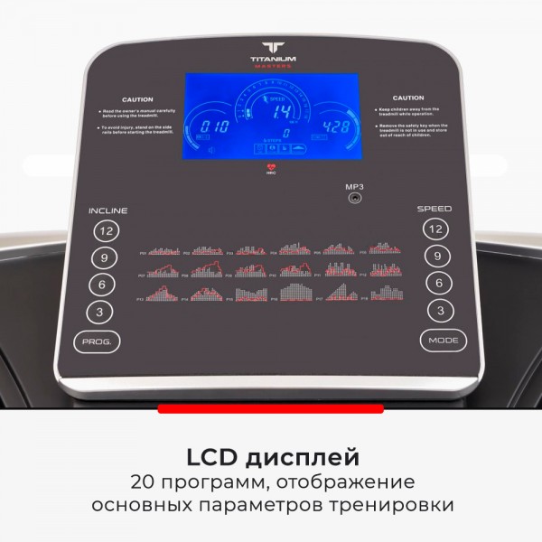 Современная консоль включает большой дисплей, на котором фиксируются все параметры забега. Есть MP-3 разъем и аудио-система. Среди двадцати программ: