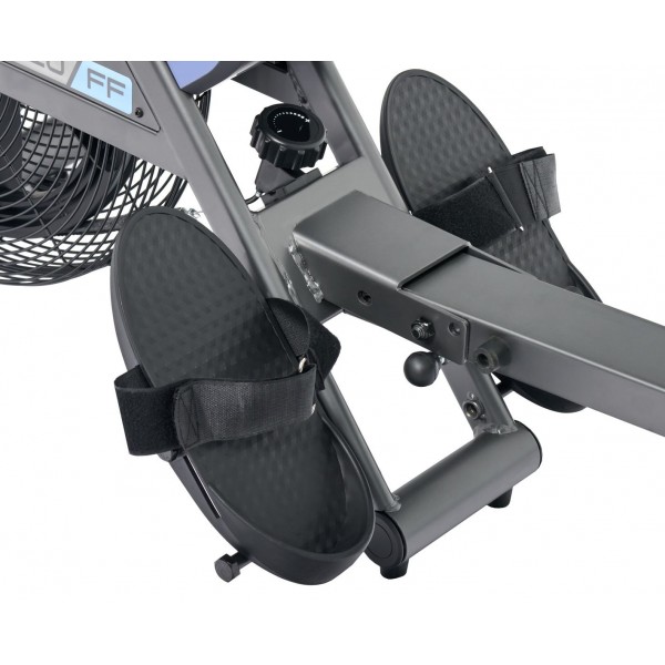 Аэродинамическое сопротивление тренажера можно менять специальным бесступенчатым регулятором (расположен под консолью). Конструкция рамы включает рельсу из особо прочной стали, ход сидения 80 см будет удобен спортсменам ростом до 2м. Тренажер можно сложить для удобного хранения в квартире.