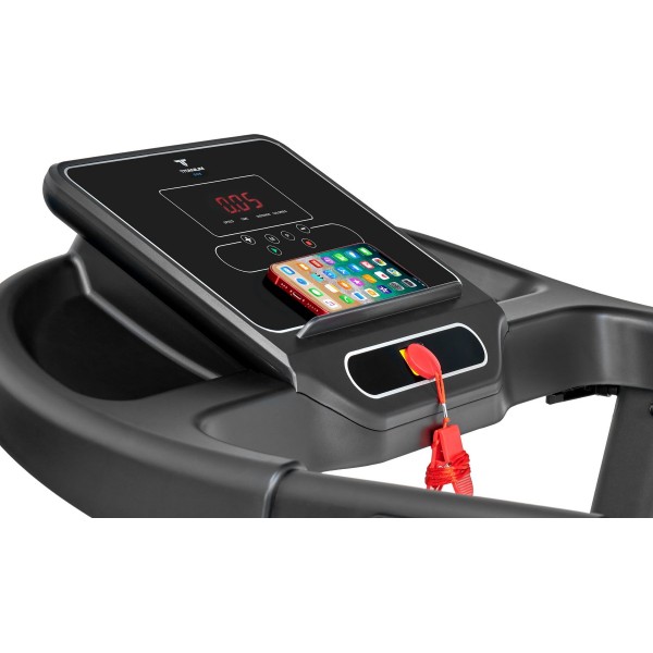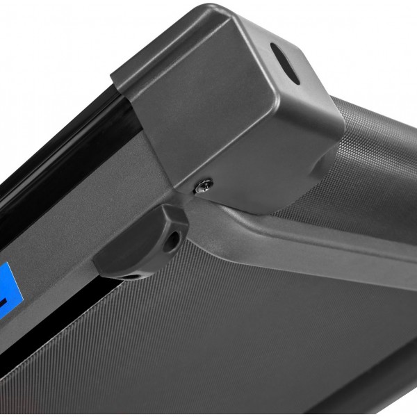 Дорожка обеспечивает разгон до 12 км/ч. Ширина полотна подойдет 43 см будет комфортна для пользователей разного роста. Установлены датчики проверки пульса. Хотя модель не имеет отдельных амортизаторов, характеристики полотна позволяют снизить ударное воздействие во время бега.