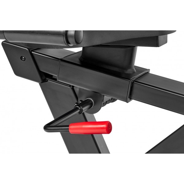 Модель оборудована маховиком 10 кг и 3х компонентным педальным узлом, а применение высококачественного преднатяжителя и кевларового ремня позволяют получить отличную равномерную нагрузку во время заезда. Переключение между уровнями сопротивления выполняется простым поворотом регулятора на центральной стойке. Можно настроить положение кресла и руля (по кругу). Данная модель будет комфортна при росте до 190 см.
