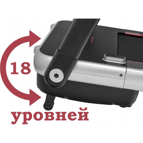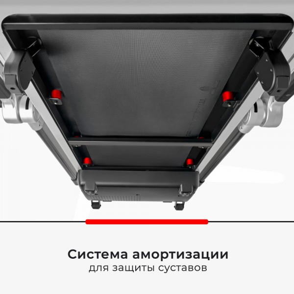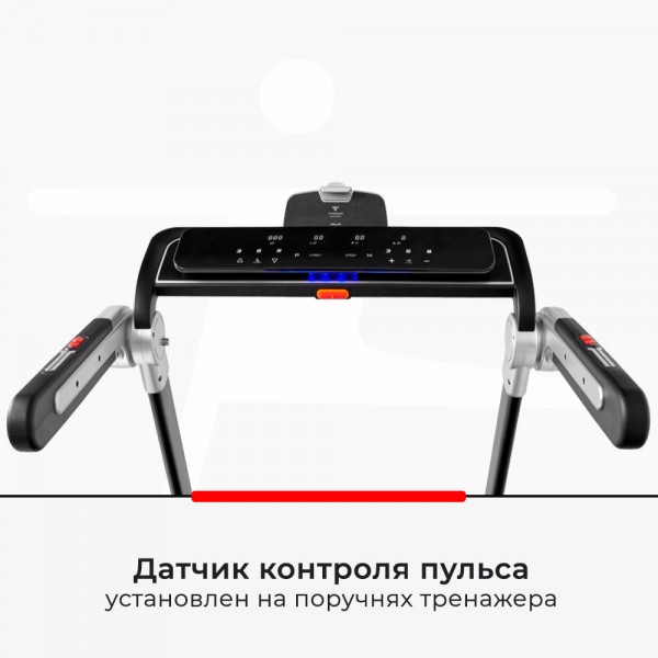 Надежный японский мотор Fuji и качественная дека позволяют тренажеру выдерживать вес до 150 кг. Разогнать полотно можно до 16 км/ч. Параметры длины и ширины беговой части подойдут большинству пользователей, а о здоровье суставов позаботится динамическая амортизация коммерческого класса. Модель может проверить частоту пульса и добавить нагрузки при изменении угла наклон. Выполнить настройку удобно на поручнях (наклон и скорость).