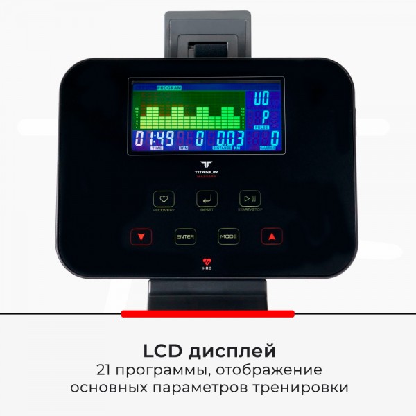 Тренажер предлагает изменение высоты седла и настройку его положения в горизонтальной плоскости. Работу сердца помогают контролировать специальные датчики на поручнях.