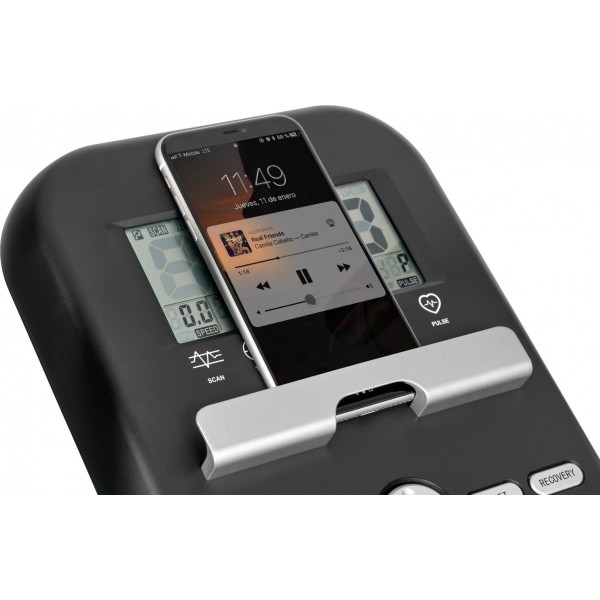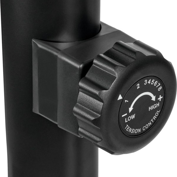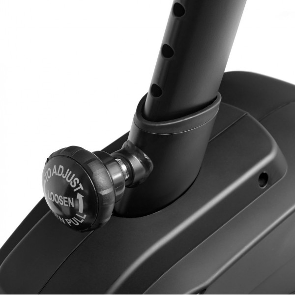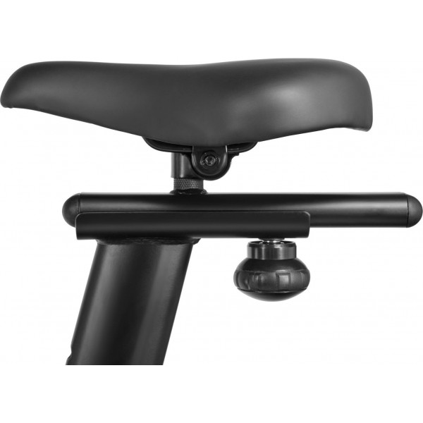 Модель оборудована маховиком 10 кг и 3х компонентным педальным узлом, а применение высококачественного преднатяжителя и кевларового ремня позволяют получить отличную равномерную нагрузку во время заезда. Переключение между уровнями сопротивления выполняется простым поворотом регулятора на центральной стойке. Подстроить положение седла можно сразу в двух плоскостях (диапазон по горизонтали 25 см, 8 вариантов высоты). Данная модель будет комфортна при росте 150-190 см.