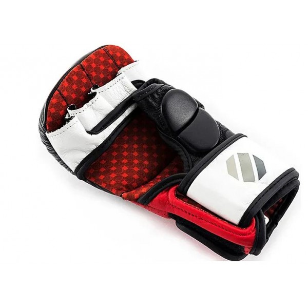 Надежная способ фиксации позволяет избегать опасного смещения в ходе тренировки. Предусмотрена дополнительная защита над пальцами и на большом пальце (пена). Специальная подкладка обеспечивает сухость руки.
