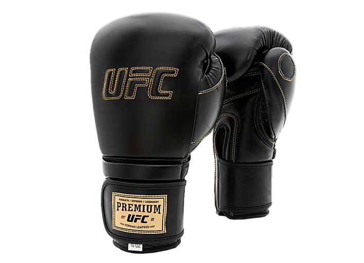 Перчатки UFC премиального класса на липучке из воловьей кожи. Защиту руки обеспечивает слой качественной пены. Перфорация материала позволяет быстро проветрить и охладить ладони спортсмена.
