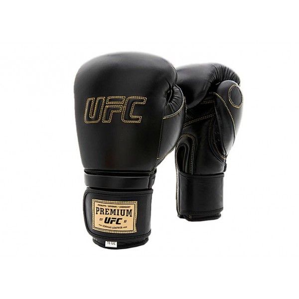 Перчатки UFC премиального класса на липучке из воловьей кожи. Защиту руки обеспечивает слой качественной пены. Перфорация материала позволяет быстро проветрить и охладить ладони спортсмена.