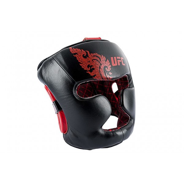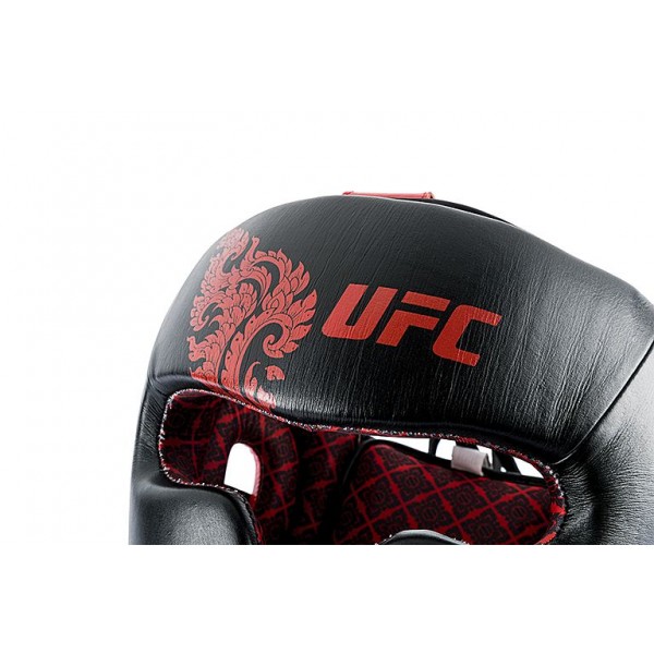 Боксерский шлем UFC Premium True Thai качественно сшит американским брендом из премиальной натуральной кожи. Изделие имеет надежную защиту головы спортсмена. Поставляется с удобной сумкой.