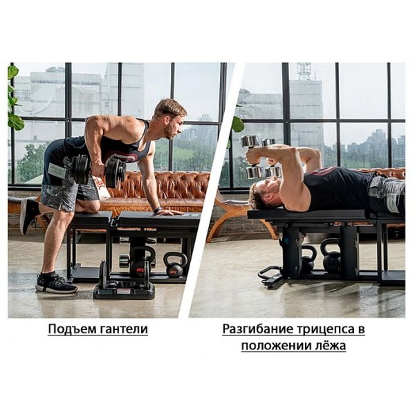 UFC Zone+ – скамья, которая станет центром домашних тренировок. Многофункциональный тренажер позволяет выполнять упражнения для разных групп мышц, в том числе со штангой и гантелями.