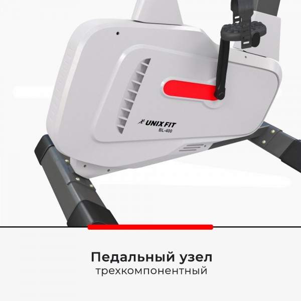 Unixfit BL-400 White – белый велотренажер с широкими возможностями. Поставляется с дополнительными принадлежностями.