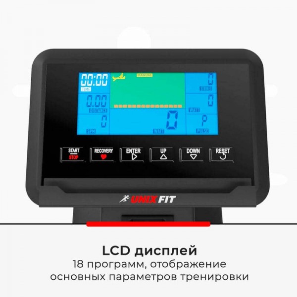 На дисплее спортсмен сможет проверить все параметры заплыва. По bluetooth тренировку можно синхронизировать с приложениями Fitshow, Spax, Kinomap. Библиотека режимов включает: