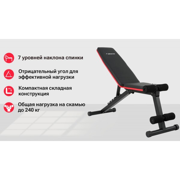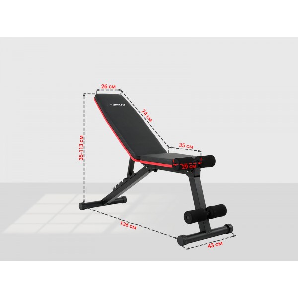 Unixfit BENCH 110 – универсальная скамья для дома, которая имеет удобную складную конструкцию и рассчитана на использование спортсменом весом до 110 кг.