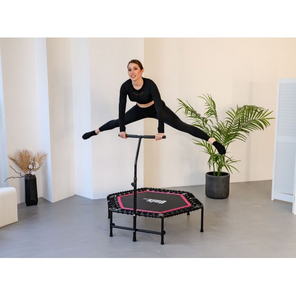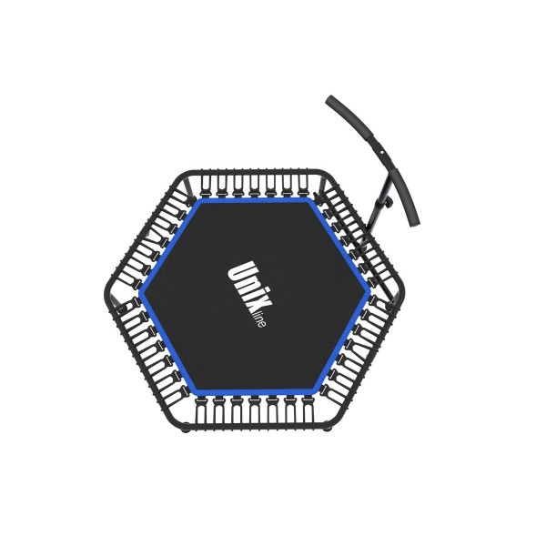 Батут Unixfit line FITNESS оборудован удобной ручкой. Серия складных батутов представлена с отделкой разного цвета. Модели рассчитаны на вес до 130 кг.