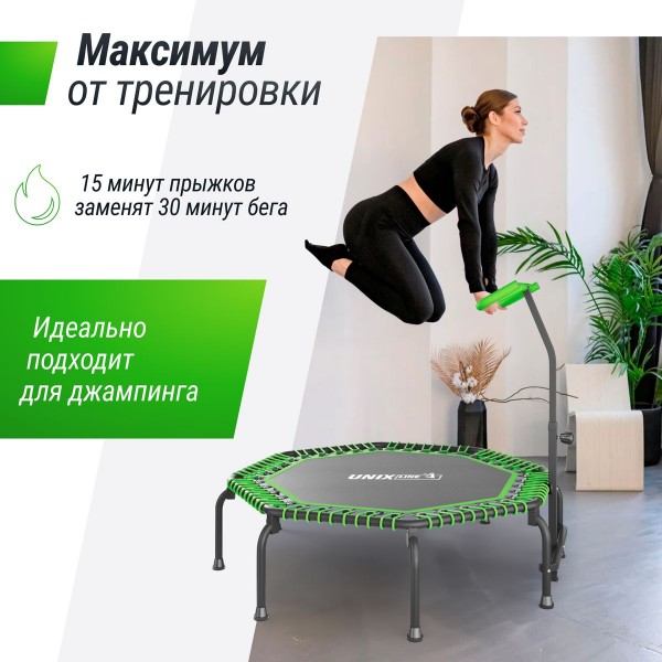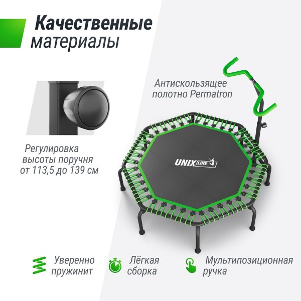 Батут Unixfit line FITNESS Premium производитель относит к коммерческому классу. Такой батут - идеальный снаряд для джампинга и выдерживает вес до 150 кг. Выпускается в 4 вариантах с разным цветом отделки.
