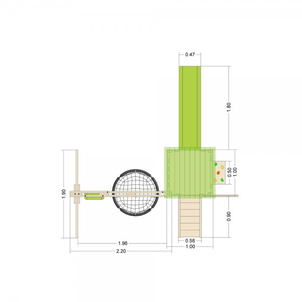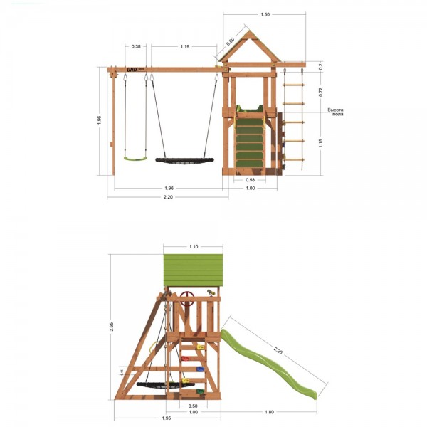 | Комплектация | Горка, скалодром, песочница, качели обычные, качели - гнездо, штурвал, подзорная труба, верёвочная лестница, крепежные элементы, инструкция по сборке изделия |