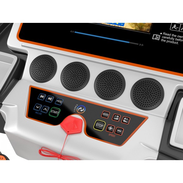 Кроме дисплея, на консоль выведены кнопки прямого выбора основных скоростей. Есть встроенные динамики и Wi-Fi для использования интернета. Доступны приложения FitShow и Smart RUN. Встроенные режимы включают: