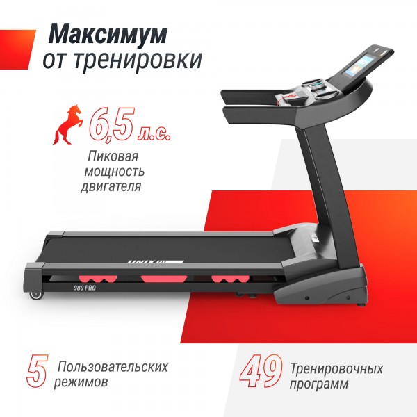 Unixfit MX-980 AC рассчитана на полукоммерческое использование спортсменами весом до 170 кг. Беговая дорожка с подключением к сети Интернет и отличными параметрами для тренировки.