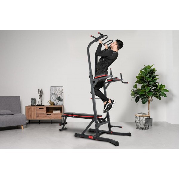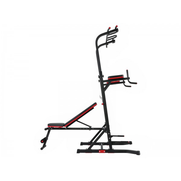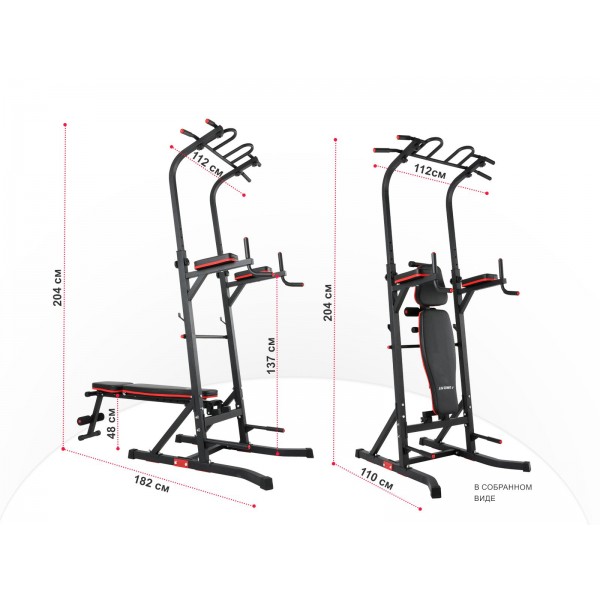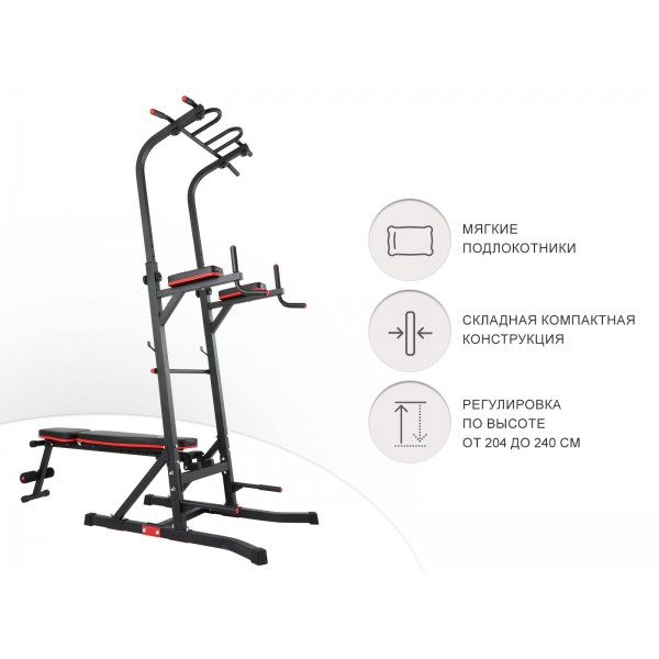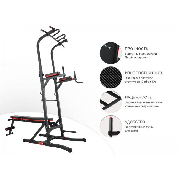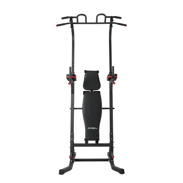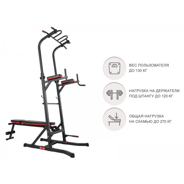 Unixfit POWER TOWER 150P объединяет возможности тренажера для подтягиваний и для тренировки с использованием штанги. Модель рассчитана на вес до 140 кг, при этом итоговая нагрузка на скамью может достигать 270 кг, а на стойки для работы со штангой - 120 кг.