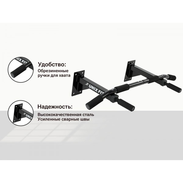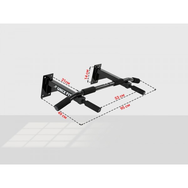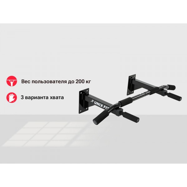 UNIX Fit PULL UP 120 - традиционный домашний турник с настенным креплением. Модель из прочного стального профиля рассчитана на вес до 200 кг.