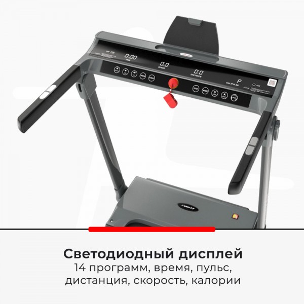 Ширина полотна 46 см достаточно комфортна для ходьбы и бега, а усиленная дека обеспечит долгий срок эксплуатации. Надежный двигатель позволяет развить скорость до 14 км/ч. Восемь плоских эластомеров снизят воздействие на суставы в ходе забега. Есть контроль пульса датчиками на поручнях.