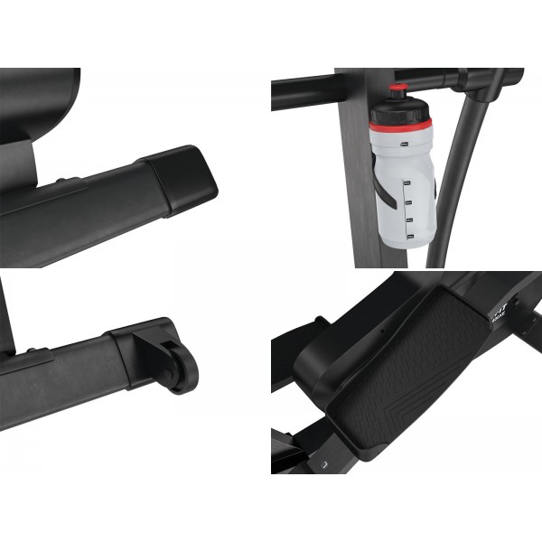 Конструкция включает место для планшета и крепление для спортивной бутылки. Также прилагается защитный коврик.