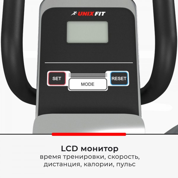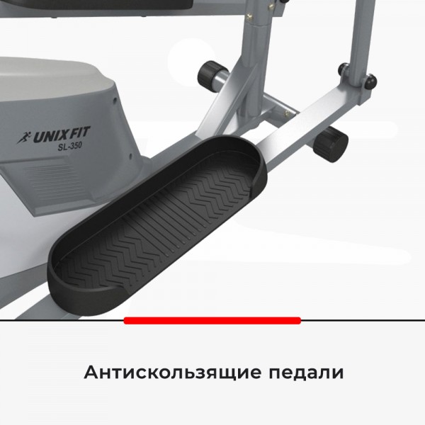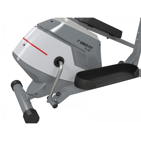 Unixfit SL- 350 – надежный эллипсоид для базовых домашних тренировок с ограничением веса спортсмена в 120 кг. Тренажер выпускается в двух цветовых решения, данная модель – серебристая.