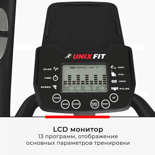 Unixfit SL-430e имеет удобную складную конструкцию для спортсменов массой до 130 кг. Надежный эллипсоид с программным блоком.