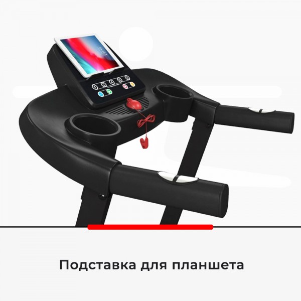 В дорожке установлен двигатель с пиковой мощностью 1,75 л.с., который работает тихо и позволяет развить скорость до 12 км/ч. Увеличивая наклон можно дополнительно увеличивать нагрузку. На полотне есть амортизация для уменьшения нагрузки на суставы. В поручнях расположены датчики контроля пульса.