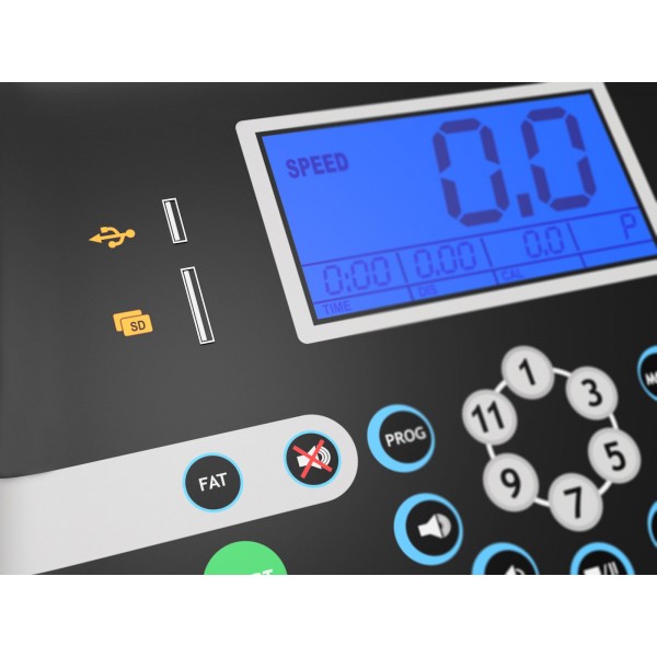 Для эффективной тренировки можно использовать 15 программ. Встроены два динамика, разъемы для аудиоустройств. На дисплее с подсветкой отображаются: