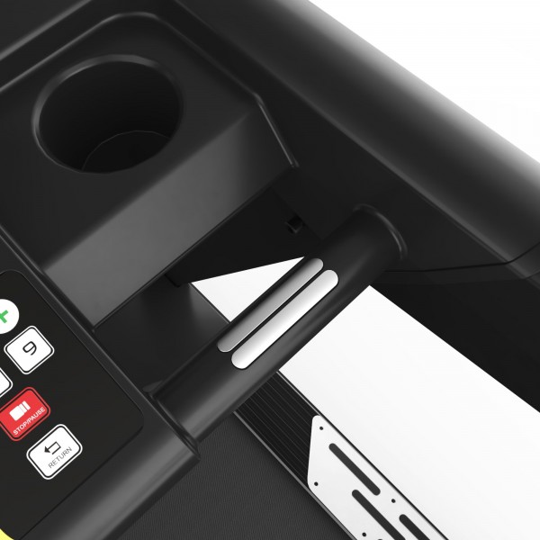 Мощная рама с 2х-слойным окрашиванием оснащена мотором, чья пиковая мощность составляет 8 л.с. Полотно толщиной 3 мм разгоняется до 22 км/ч. Ширина 57 см позволяет бежать с полным комфортом, а длина 160 см подойдет даже высоким пользователям. Для увеличения нагрузки можно поднять полотна до 18 градусов. Для считывания частоты пульса используются датчики на поручнях дорожки. Тренажер имеет современную систему амортизации.