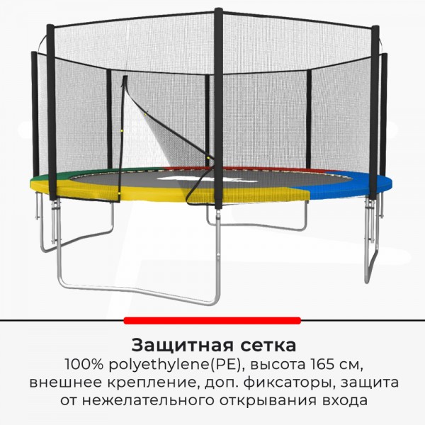 | Защитная сетка | 100% polyethylene(PE), высота 165 см, внешнее крепление, защита от нежелательного открывания входа, дополнительные фиксаторы |