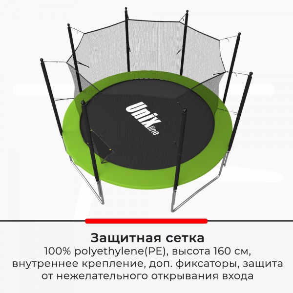 Батут Unixfit line Simple - надежный батут с защитной сеткой в базовой комплектации, который отличает простая сборка и яркий дизайн.