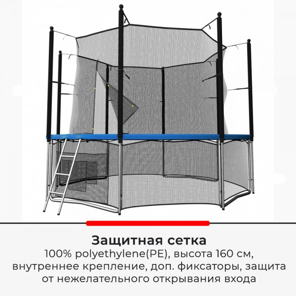 | Тип батута | с сеткой, лестницей и нижней защитной сетью |