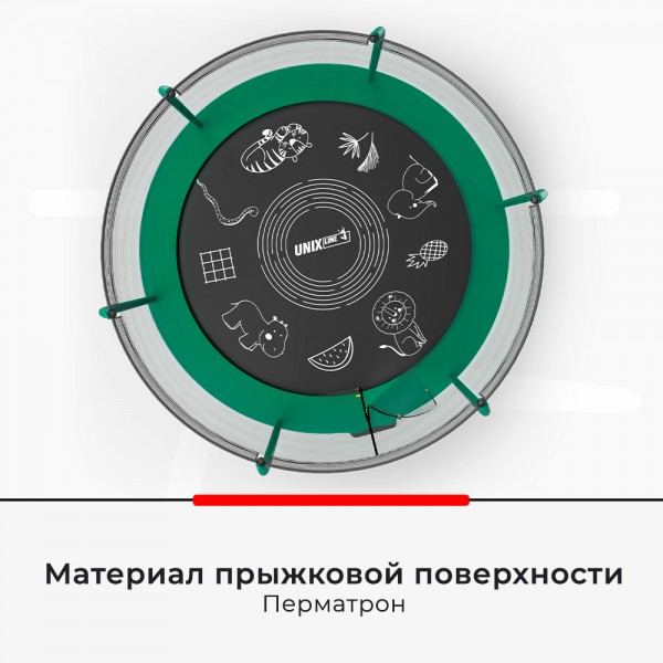 Батут Unixfit line SUPREME GAME можно назвать настоящей игровой комнатой для детей! Специальная пропитка поверхности полотна позволяет получить яркие изображения мелками, которые затем несложно удалить влажной губкой.